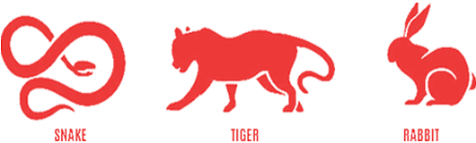 The Chinese signs of Zodiac are represented by twelve animals in the cycle repeated each twelve years.